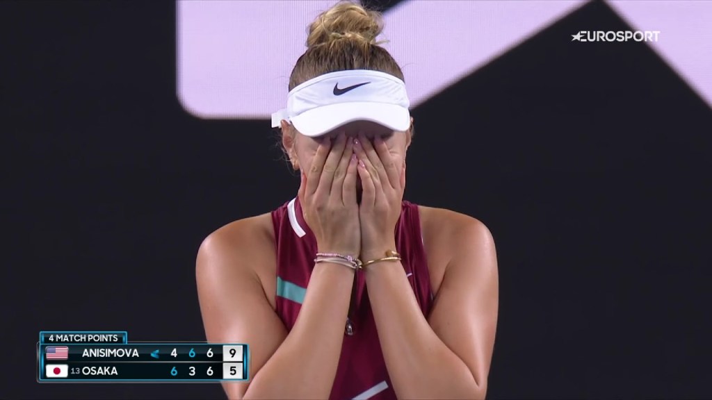 Puțini îi dădeau șanse americancei în duelul cu puternica Osaka. Anisimova a început meciul pierzându-și serviciul, avantaj pe care Naomi l-a păstrat până la finalul setului, încheiat cu 6-4. Amanda a reușit să-și adjudece setul 2 cu 6-3, pentru a trimite meciul într-un decisiv epic, în care va salva două mingi de meci și în care va trebui să servească de două ori pentru a rămâne în meci.