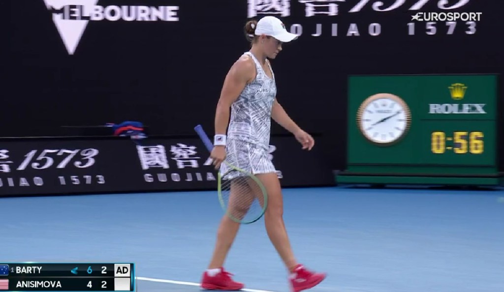 Rămâne neînvinsă și cu un singur set pierdut în 2022 și pare că nimic nu îi poate sta în cale: a trecut de Lesia Ţurenko în 54 de minute (6-0, 6-1), de Lucia Bronzetti în 52 de minute (6-1, 6-1), de Camila Giorgi în 61 de minute (6-2, 6-2) și de Anisimova într-o oră şi 14 minute. Se poate argumenta că Barty nu a întâlnit încă o adversară de top la AO, dar e clar că tenisul ei e la un nivel foarte înalt. Să nu uităm că ea a încheiat cu un singur set pierdut (la Cori Gauff) turneul câștigat la Adelaide. În rest, a învins în minumum de seturi jucătoare de calibru – Sofia Kenin, campioană la Australian Open 2020, Iga Swiatek campioana de la Roland Garros tot în 2020 și, în finală, puternica Elena Rybakina din Kazahstan.