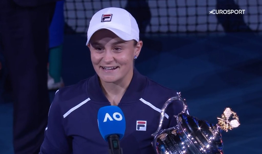 Pentru Barty, care are în palmares un trofeu la Roland Garros în 2019 și unul la Wimbledon în 2021, să câștige la Australian Open, pe pământ natal, în fața propriului public, este un vis despre care a vorbit de multe ori, iar acum a reușit să îl împlinească. Ashley este, fără îndoială, cea mai completă și mai bună jucătoare din circuitul feminin, pe care îl va domina probabil mulți ani de acum înainte. Este doar a doua jucătoare aflată în activitate, alături de Serena Williams, care a câștigat un Grand Slam pe toate cele trei suprafețe. În prezent are 8331 de puncte, fiind la o distanță confortabilă de 2633 de puncte de locul doi, deținut de Aryna Sabalenka.