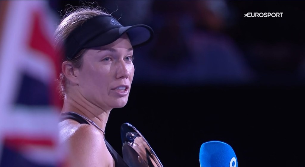 Danielle a avut un discurs în care și-a arătat emoțiile, după ce ne obișnuise să afișeze poker face în timpul meciurilor. A felicitat-o pe Barty și echipa ei, le-a mulțumit echipei și oamenilor care i-au fost alături și au crezut în ea, iubitului și antrenorului ei, Tom Couch, dar și voluntarilor și tuturor celor implicați în organizarea și buna desfășurare a turneului.