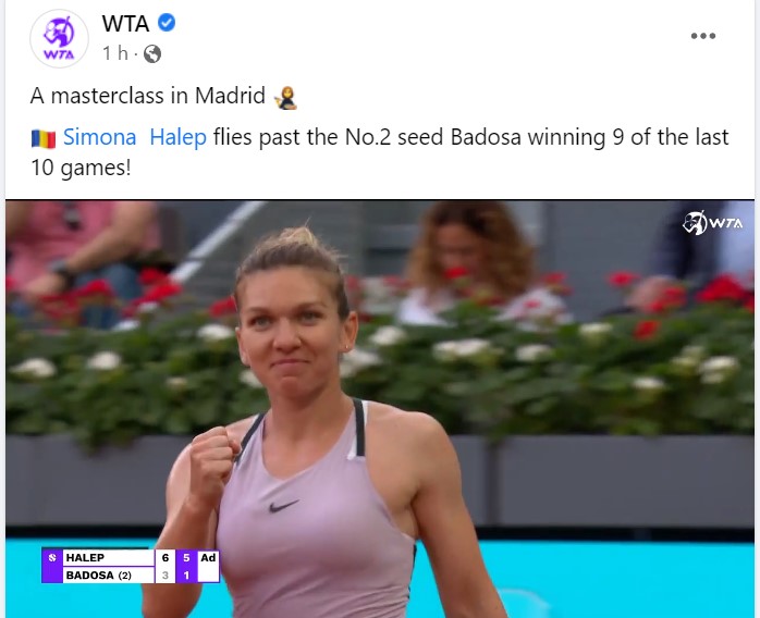 Puțini se așteptau probabil, la începutul meciului ca Simona, după o pauză lungă și cu relativ puține meciuri jucate în acest an, să câștige atât de categoric în fața uneia dintre cele mai bune jucătoare a momentului, care în ultimul an a urcat din top 70 în top 10 și este acum numărul 2 WTA. Speranțele au crescut pentru noi după primele ghemuri în care sportiva noastră și-a etalat nivelul excelent și, mai ales, după câștigarea primului set. În ultimele 30 de meciuri în care a câștigat primul set, Simo s-a impus de 29 de ori, o statistică incredibilă.