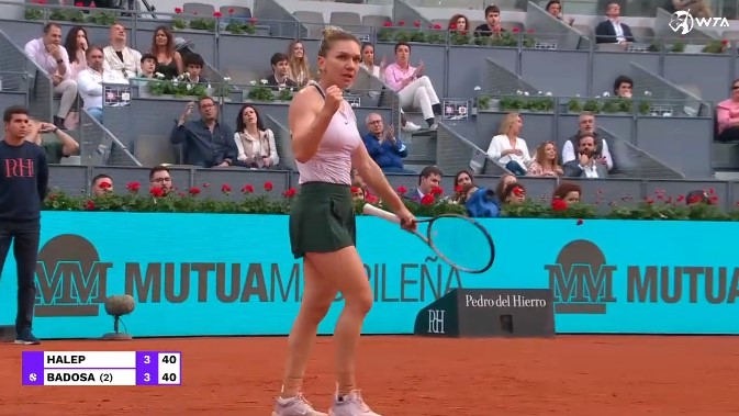 Simo nu putea fi însă oprită, după pauză a continuat ce începuse, cu încă un break. La 5-0 pentru româncă, scor neverosimil la începutul meciului, Paula a reușit, în uralele publicului, să câștige un ghem pe propriul serviciu. S-a salvat astfel de la un umilitor bagel, care ar fi fost o premieră pentru iberică, pe zgură. Încurajată de ghemul câștigat, Badosa a reușit câteva lovituri frumoase și a obținut o minge de break în jocul următor, salvată însă de Simona, care a încheiat meciul pe propriul serviciu.