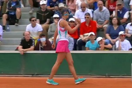 Condusă cu 2-0 și 15-0 în decisiv, sportiva noastră a avut o răbufnire nervoasă și a aruncat racheta care a ricoșat într-un spectator, un băiețel de 4-5 ani.