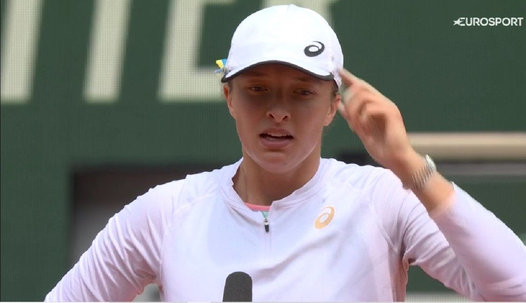 Cel mai complicat meci la acest turneu l-a avut sâmbătă, în turul 3, cu muntenegreanca Danka Kovinic, care a reușit chiar să îi facă break liderului mondial. A pierdut apoi cu un scor mai mult decât onorabil, 6-3, 7-5, scăpând de bagel-ul pe care Iga îl împarte cu dărnicie adversarelor sale, măcar o dată pe meci. Pentru câteva ghemuri însă, sportiva din Muntenegru, aflată pe locul 95 mondial și ajunsă în premieră în turul 3 la un Grand Slam, ne-a dat speranța impresia că Iga POATE SĂ FIE ÎNVINSĂ. Desigur, când ne-am trezit din reverie, Iga era acolo, ținând discursul învingătoarei.