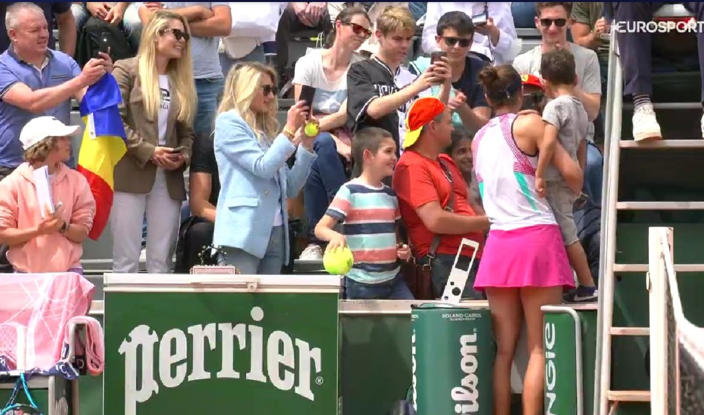 Imediat după ce s-a salutat cu adversara și cu arbitrul, jucătoarea a mers din nou la copil, a vorbit cu familia și s-a fotografiat cu micuțul.