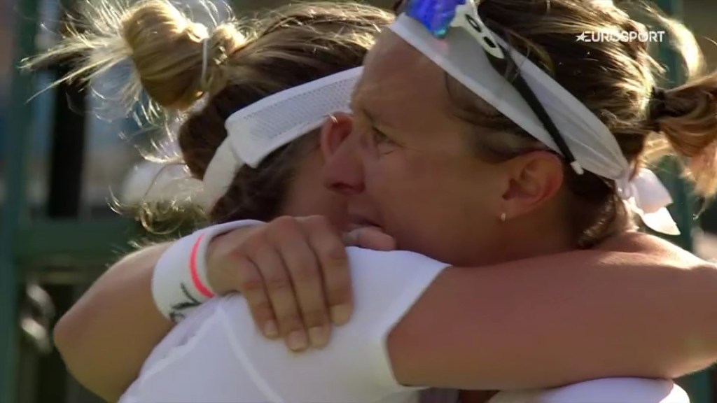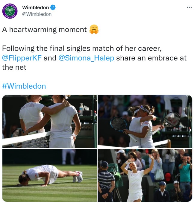 Au urmat momente emoționante la fileu, cu o îmbrățișare lungă între jucătoare și cu Flipkens izbucnind în plâns, în aplauzele spectatorilor de pe terenul 2 de la Wimbledon.